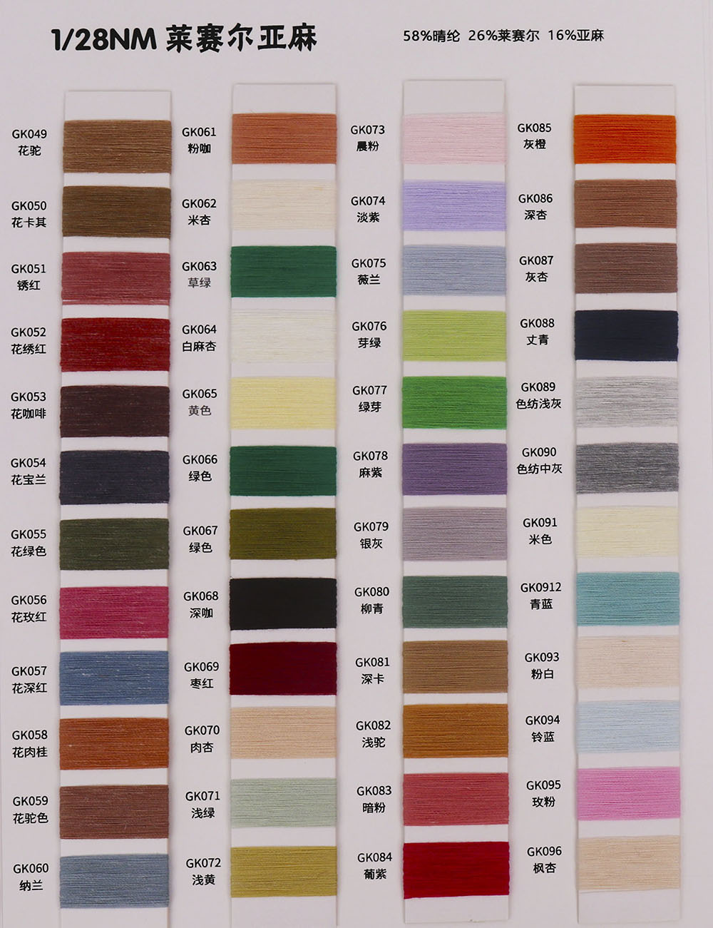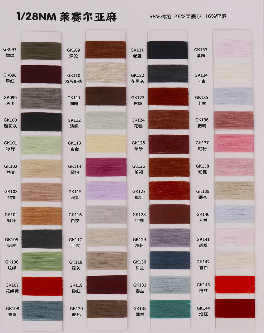 16%亚麻 Linen, 26%莱赛尔Lyocell 58%晴纶 Acrylic